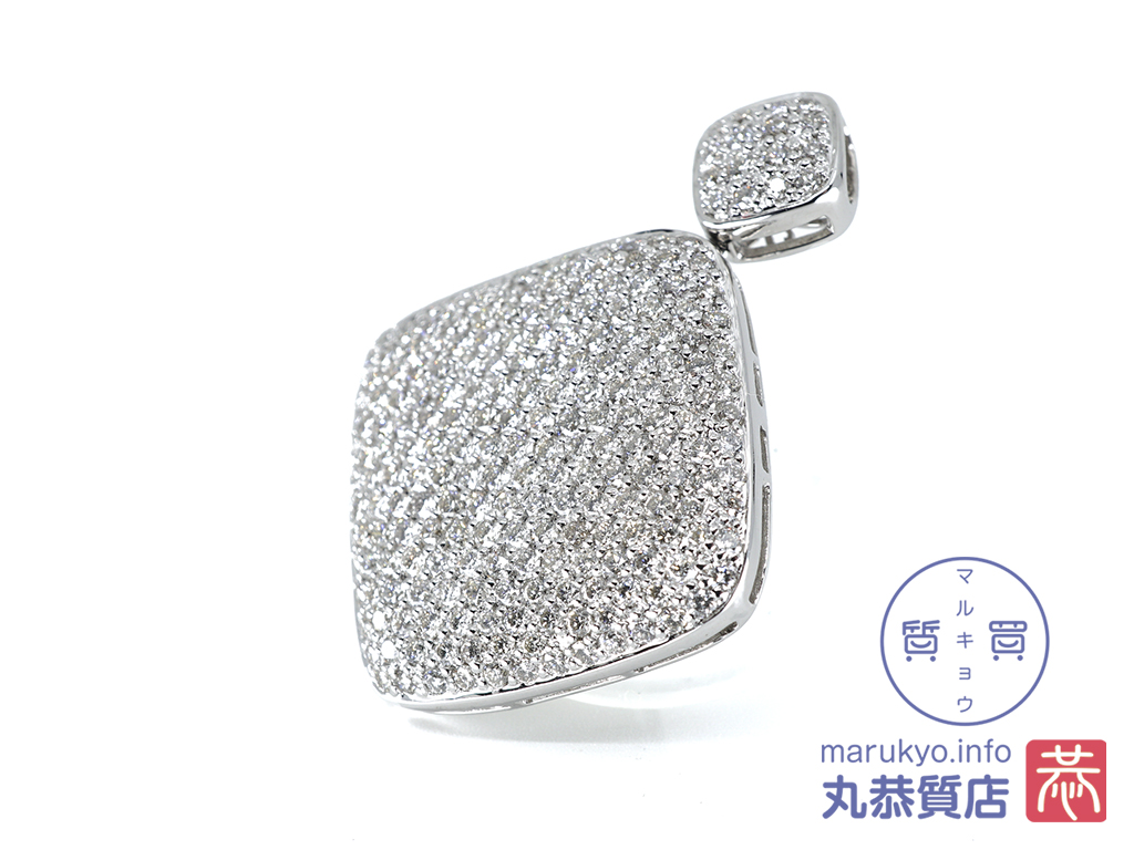 ひし形の台に、ダイヤモンドがぎっしりと輝くペンダントトップ。